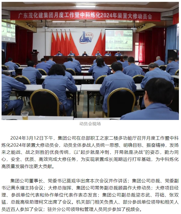 集團(tuán)公司2024年中科煉化裝置大修動(dòng)員會(huì)召開