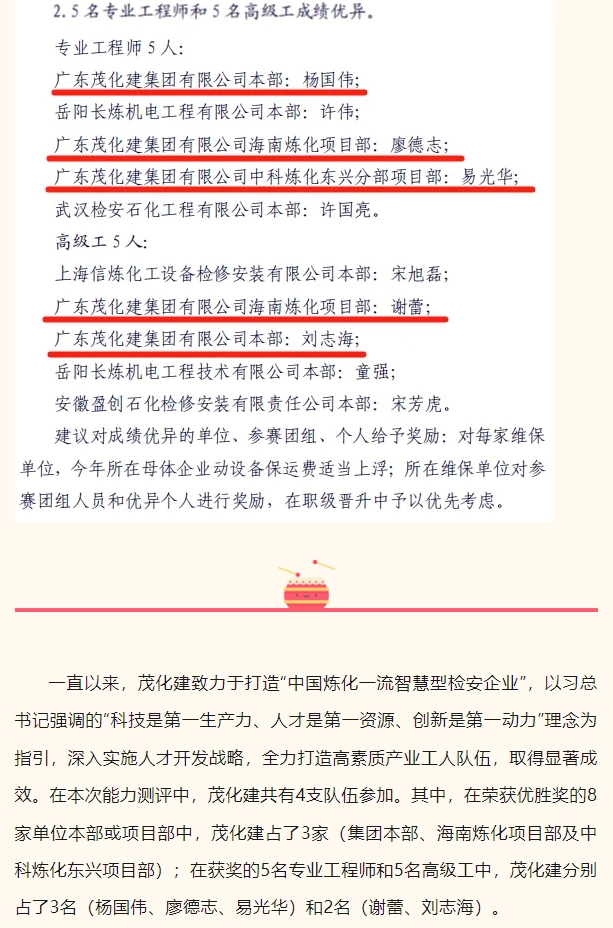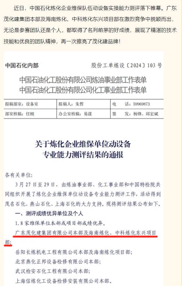 祝賀!茂化建在中石化煉化企業(yè)維保隊伍動設備實操能力測評中成績優(yōu)異,名列前茅