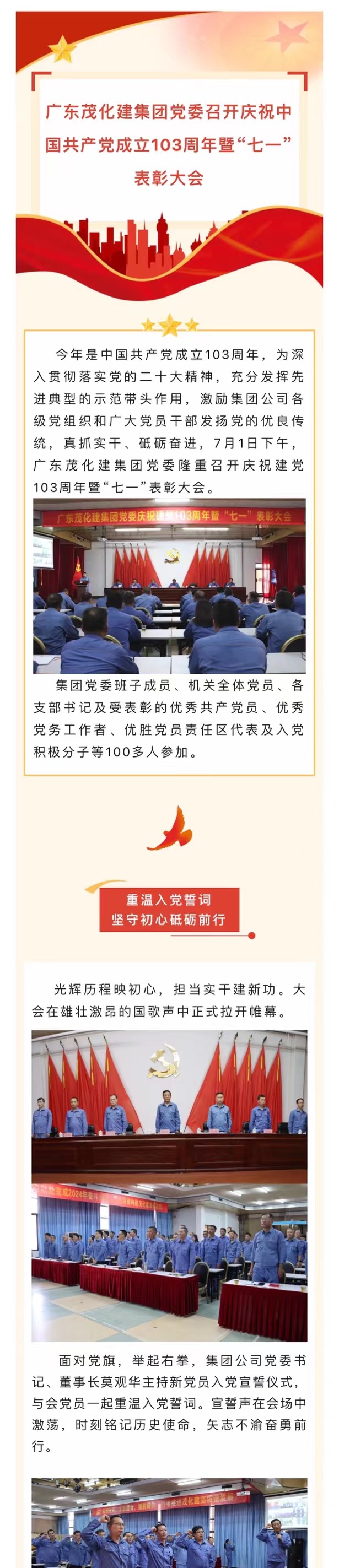 廣東茂化建集團(tuán)黨委召開(kāi)慶祝中國(guó)共產(chǎn)黨成立103周年暨“七一”表彰大會(huì)