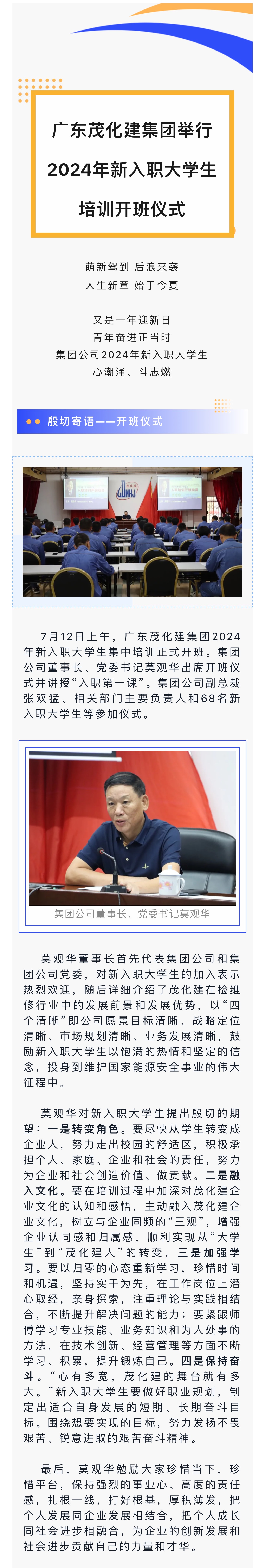 廣東茂化建集團(tuán)舉行2024年新入職大學(xué)生培訓(xùn)開班儀式
