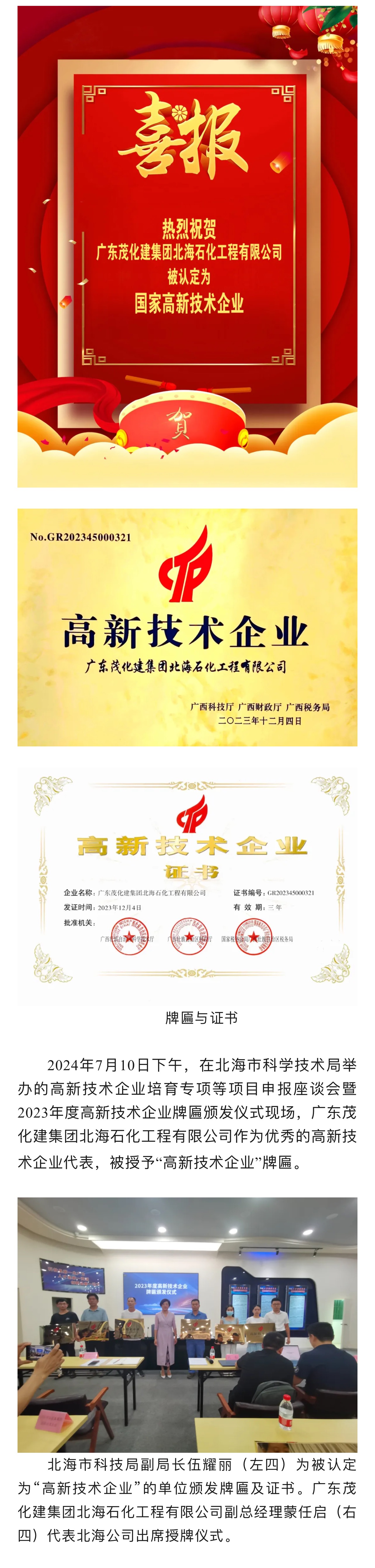 喜報|廣東茂化建集團北海石化工程有限公司 躋身“國家高新技術企業(yè)”行列