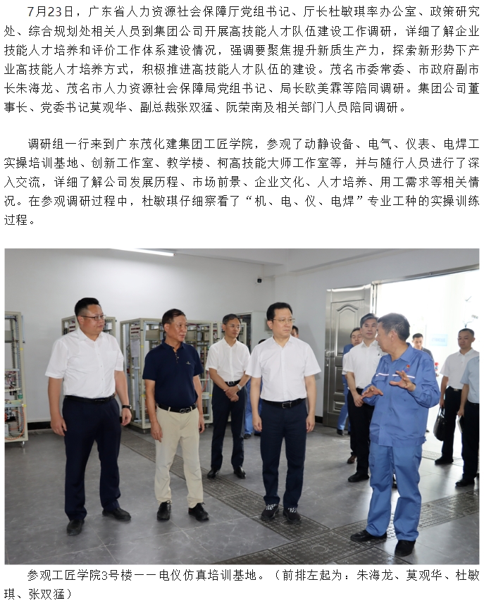 廣東省人社廳到集團公司調(diào)研高技能人才隊伍建設工作