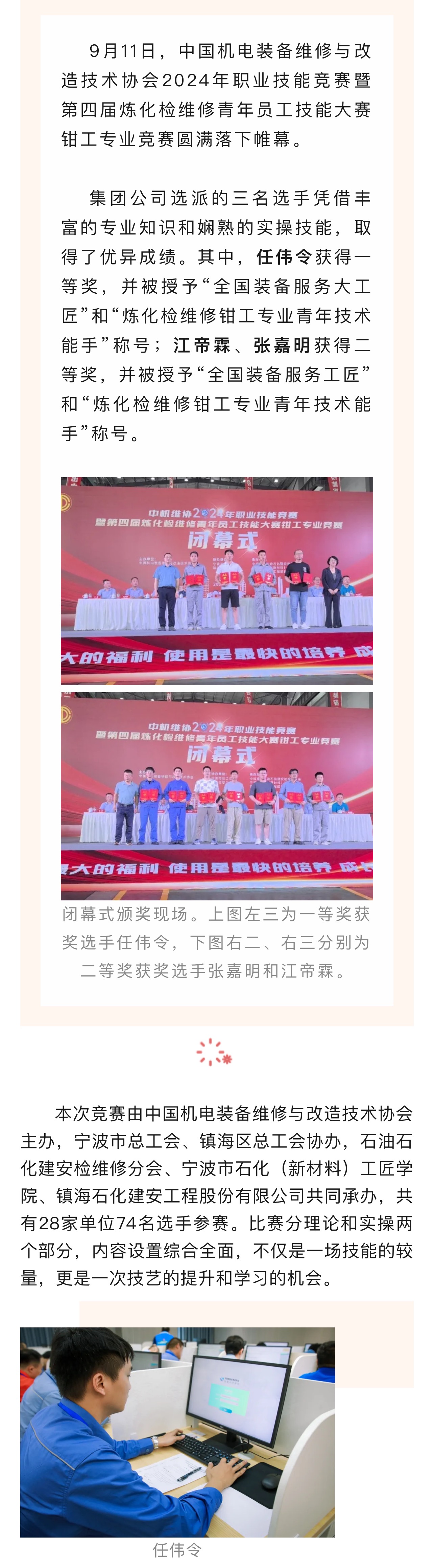 喜報(bào):集團(tuán)公司在中機(jī)維協(xié)2024年職業(yè)技能競賽暨第四屆煉化檢維修青年員工技能大賽