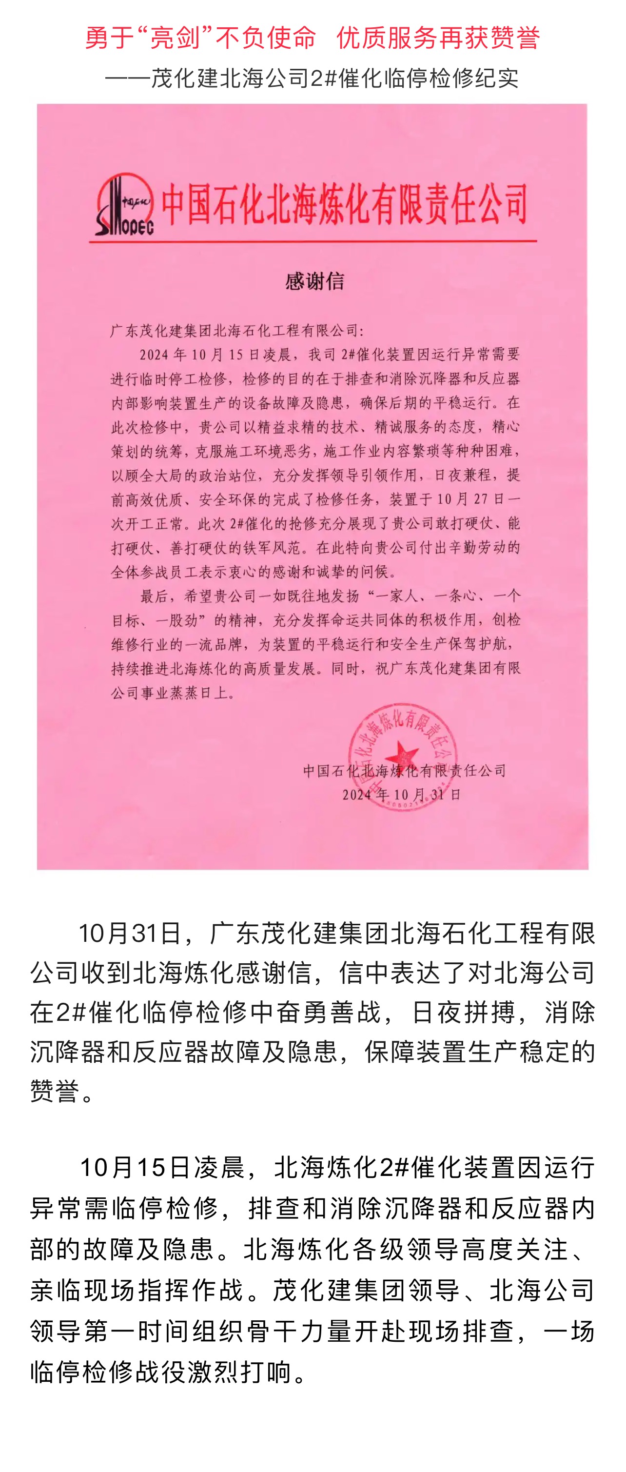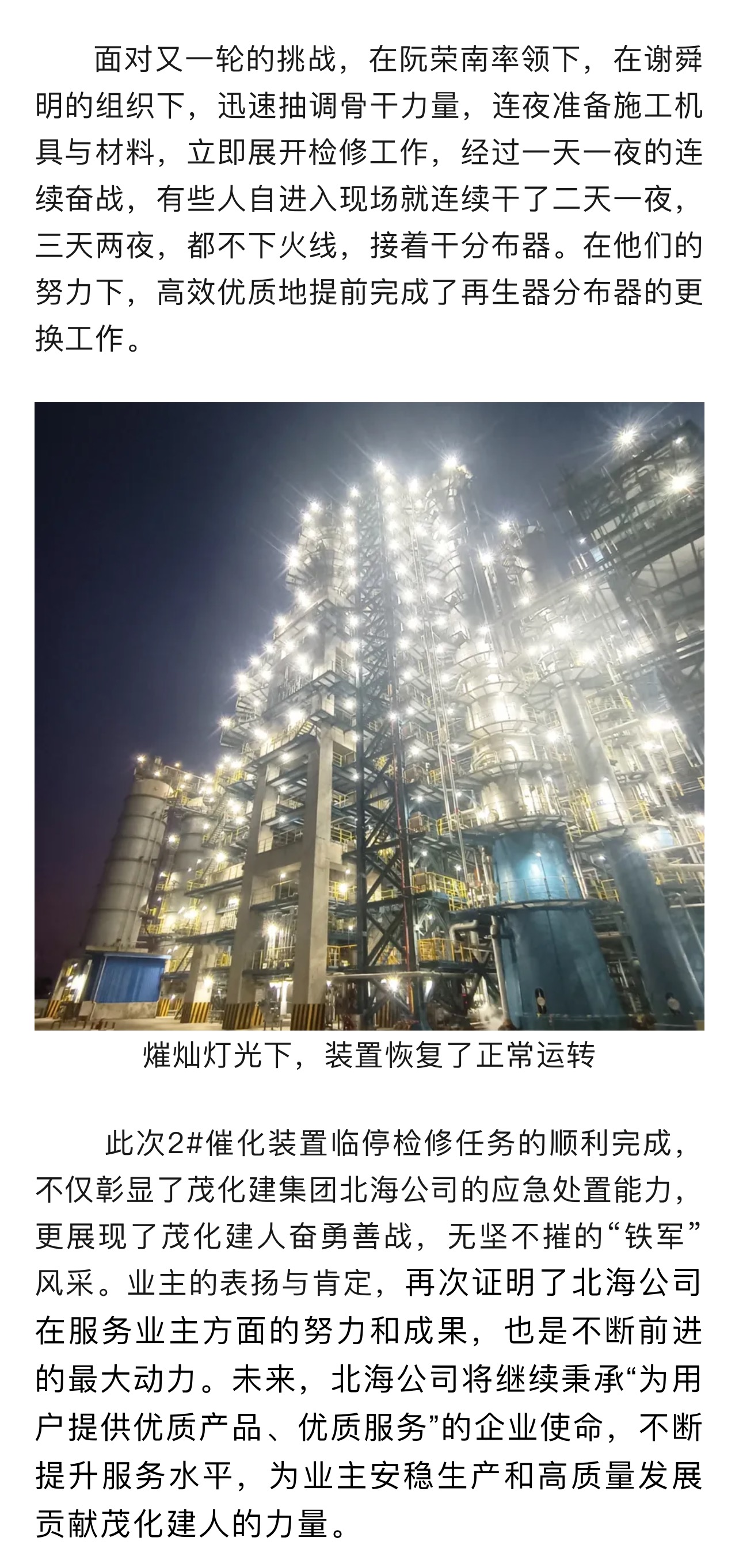 茂化建北海公司2#催化臨停檢修紀(jì)實