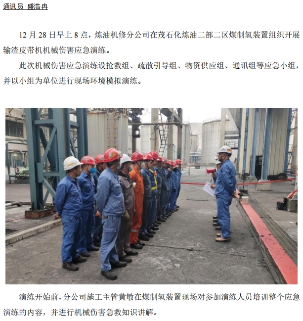 煉油機(jī)修開(kāi)展機(jī)械傷害應(yīng)急演練