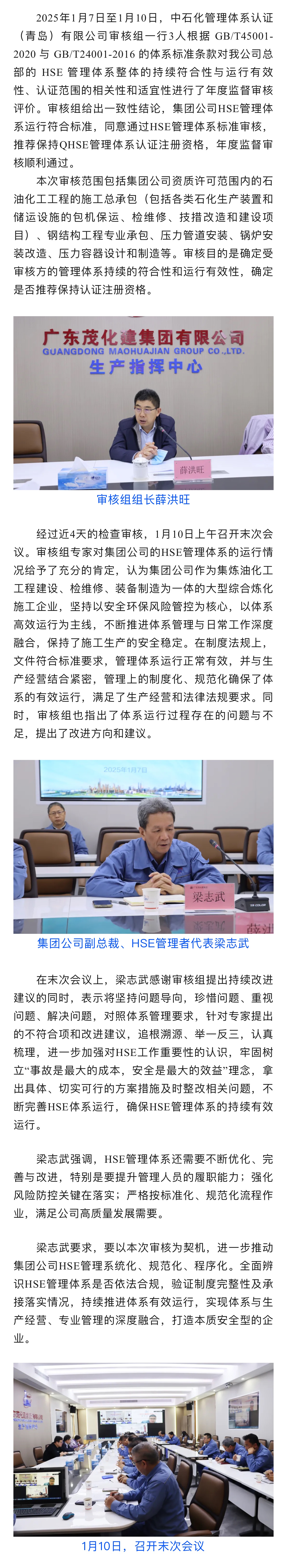 集團公司順利通過HSE管理體系年度監(jiān)督審核