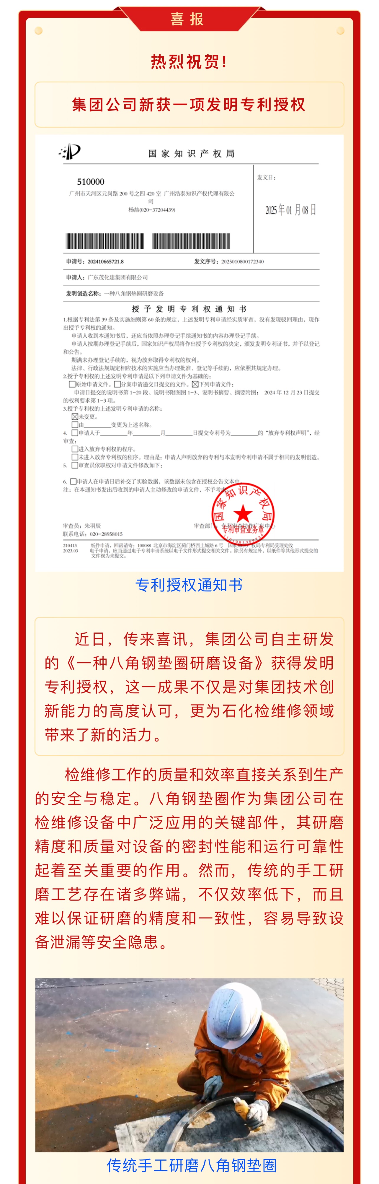 喜報:集團(tuán)公司新獲一項發(fā)明專利授權(quán)