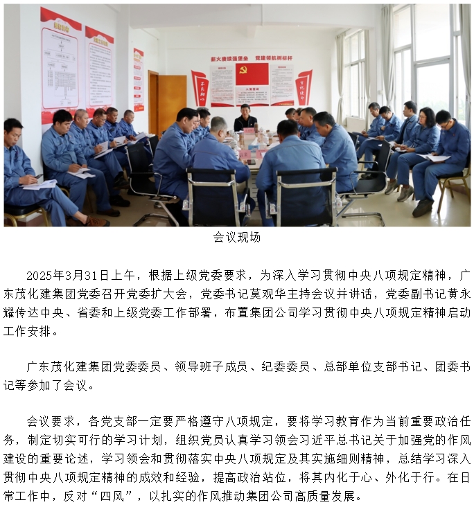 廣東茂化建集團黨委召開貫徹中央八項規(guī)定精神學習教育部署啟動會