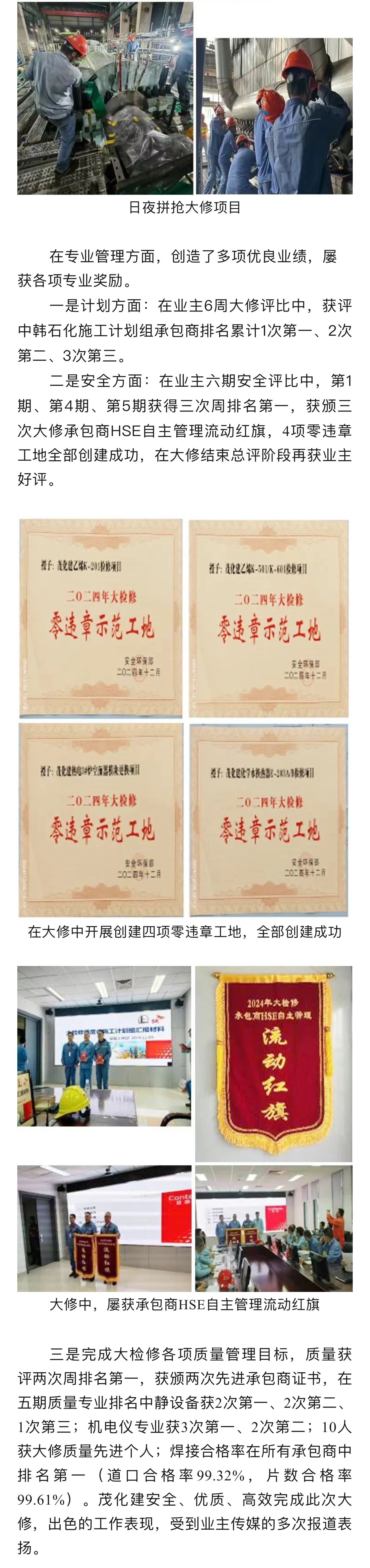 喜報|榮獲中韓石化2024年大修改造 “優(yōu)秀承包商”稱號