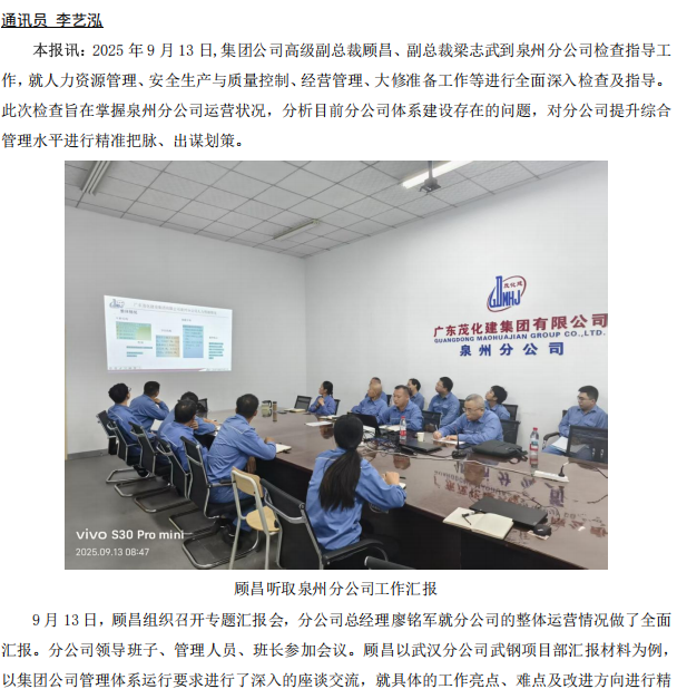 集團公司領導到泉州分公司檢查指導工作