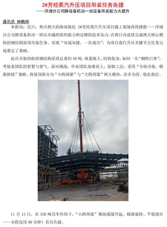洋浦分公司靜設(shè)備機(jī)動(dòng)一班設(shè)備吊裝能力大提升