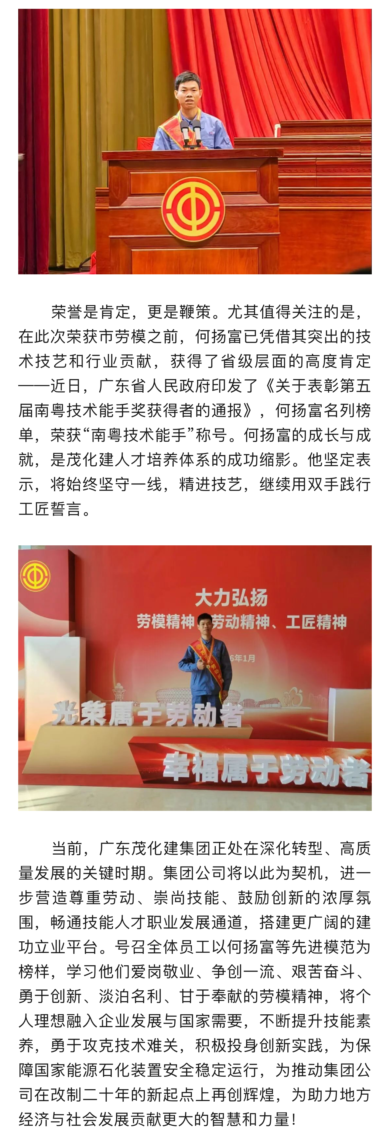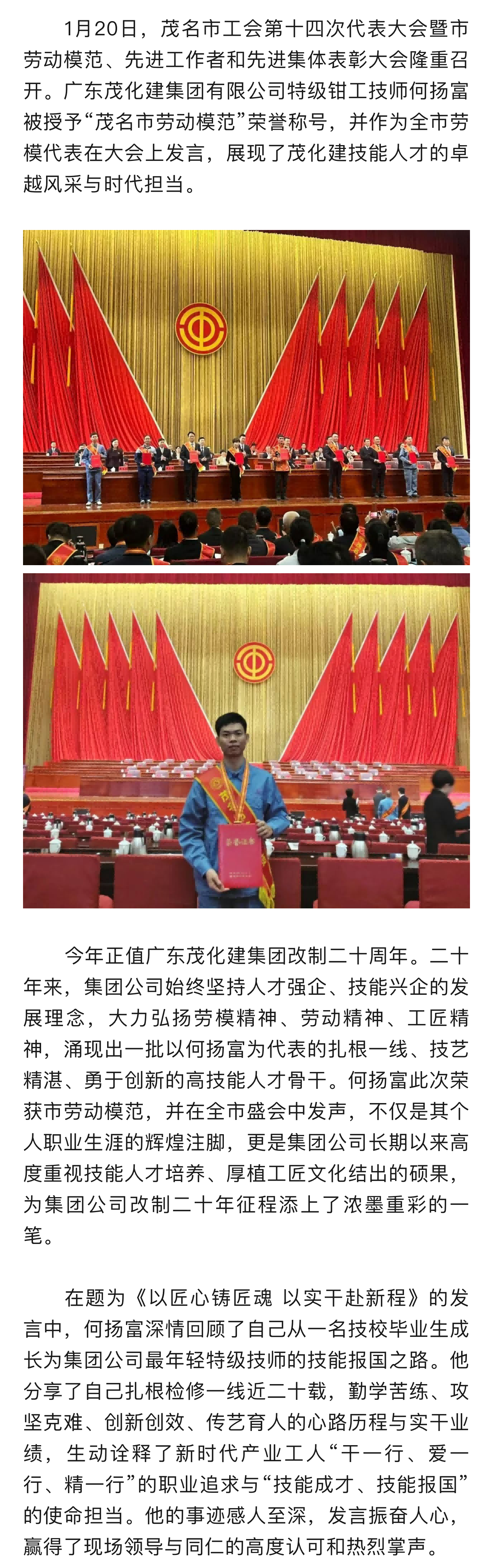 喜報(bào)!廣東茂化建集團(tuán)特級(jí)技師何揚(yáng)富榮獲“茂名市勞動(dòng)模范”榮譽(yù)稱號(hào)